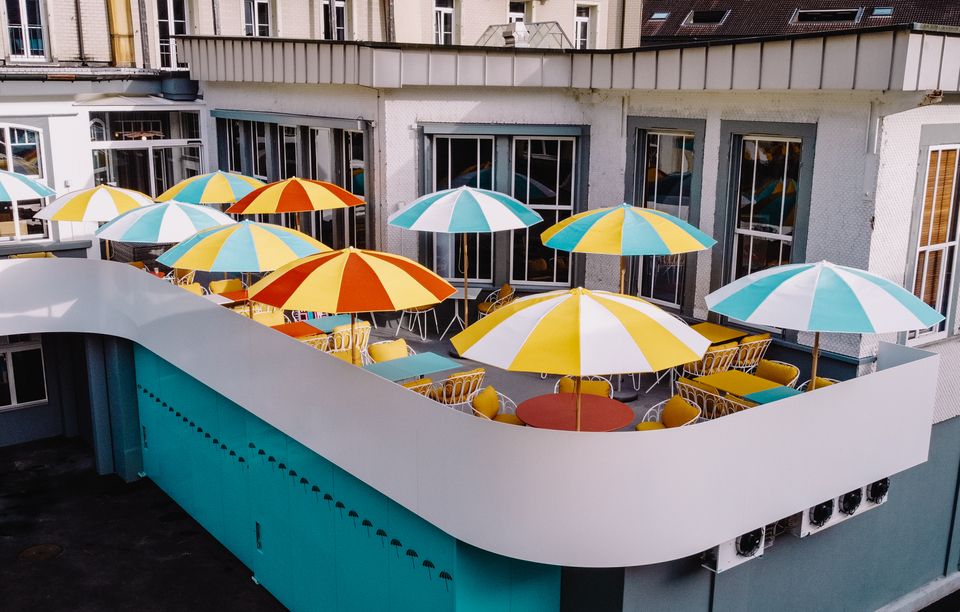 • Spendet großzügigen Schatten direkt am Schaufenster und den Stehtischen