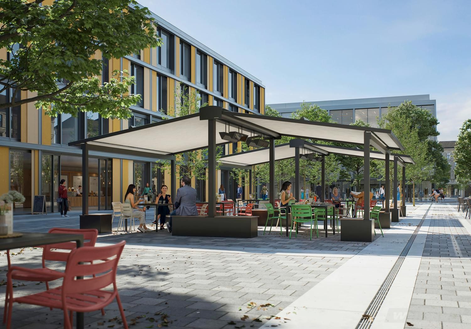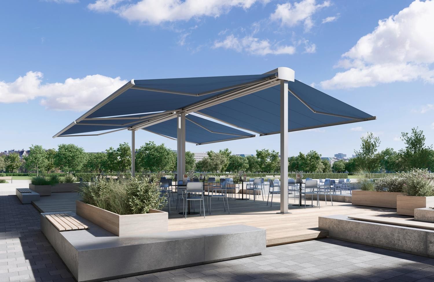 • Standmarkisen oder Pergolen für zentrale Sitzflächen oder Veranstaltungsbereiche