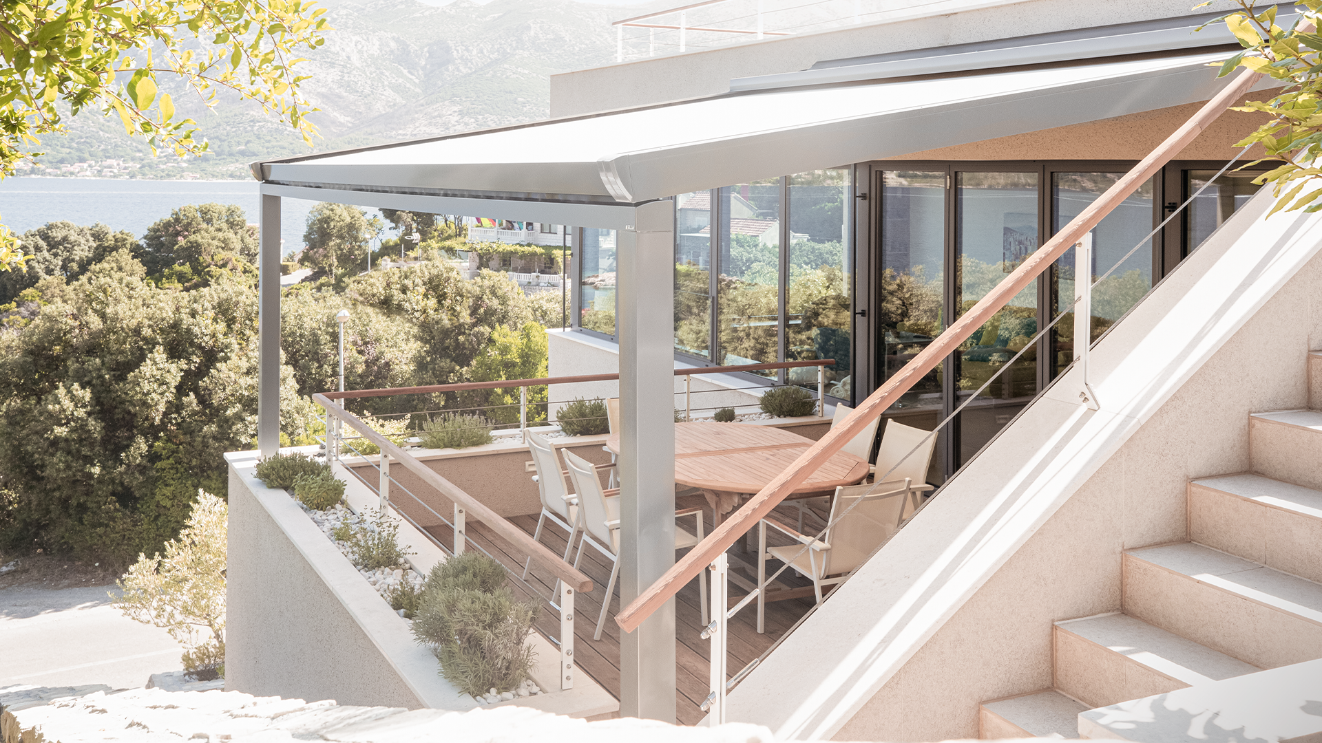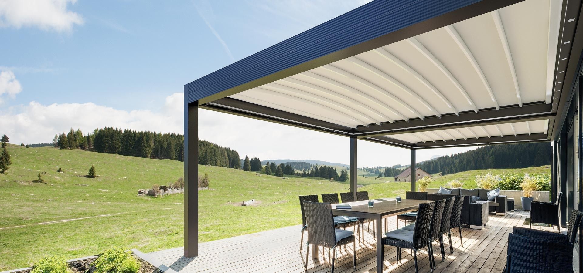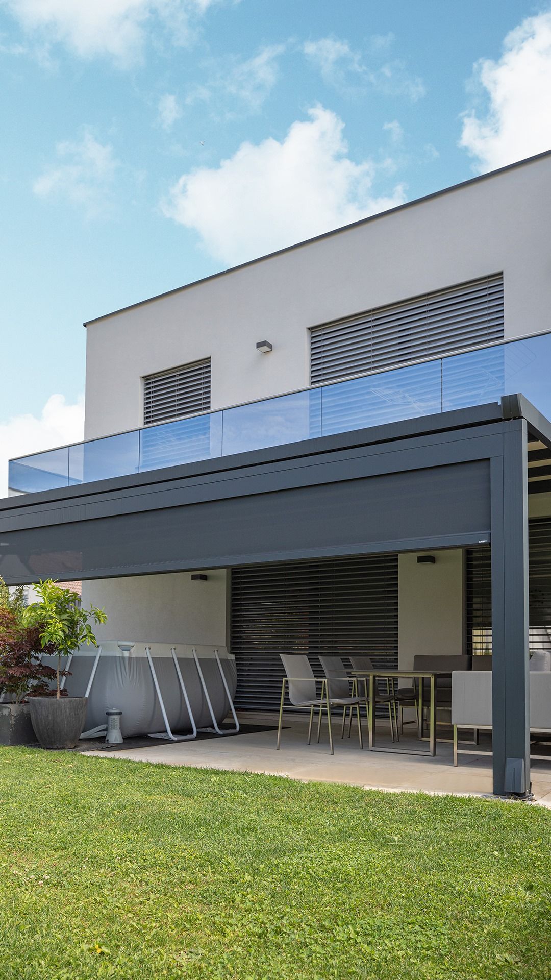 Unsere Faltdächer sind elegant, zeitlos im Design und schaffen einen geschützten Raum im Freien. Schutz vor der Sommerhitze, dem plötzlichen Gewitterregen, oder einfach ein neuer Raum im Freien – Eine Pergola bringt mediterranes Lebens- und Freiheitsgefühl in Ihren Garten und auf Ihre Terrasse. Das in Trendfarben erhältliche Premium PVC Dach leitet das Regenwasser sicher in die integrierte Regenrinne. Das Faltdach gibt es in einer freistehenden Version, seitlich am Haus oder als Dachmodul zwischen zwei Wänden.