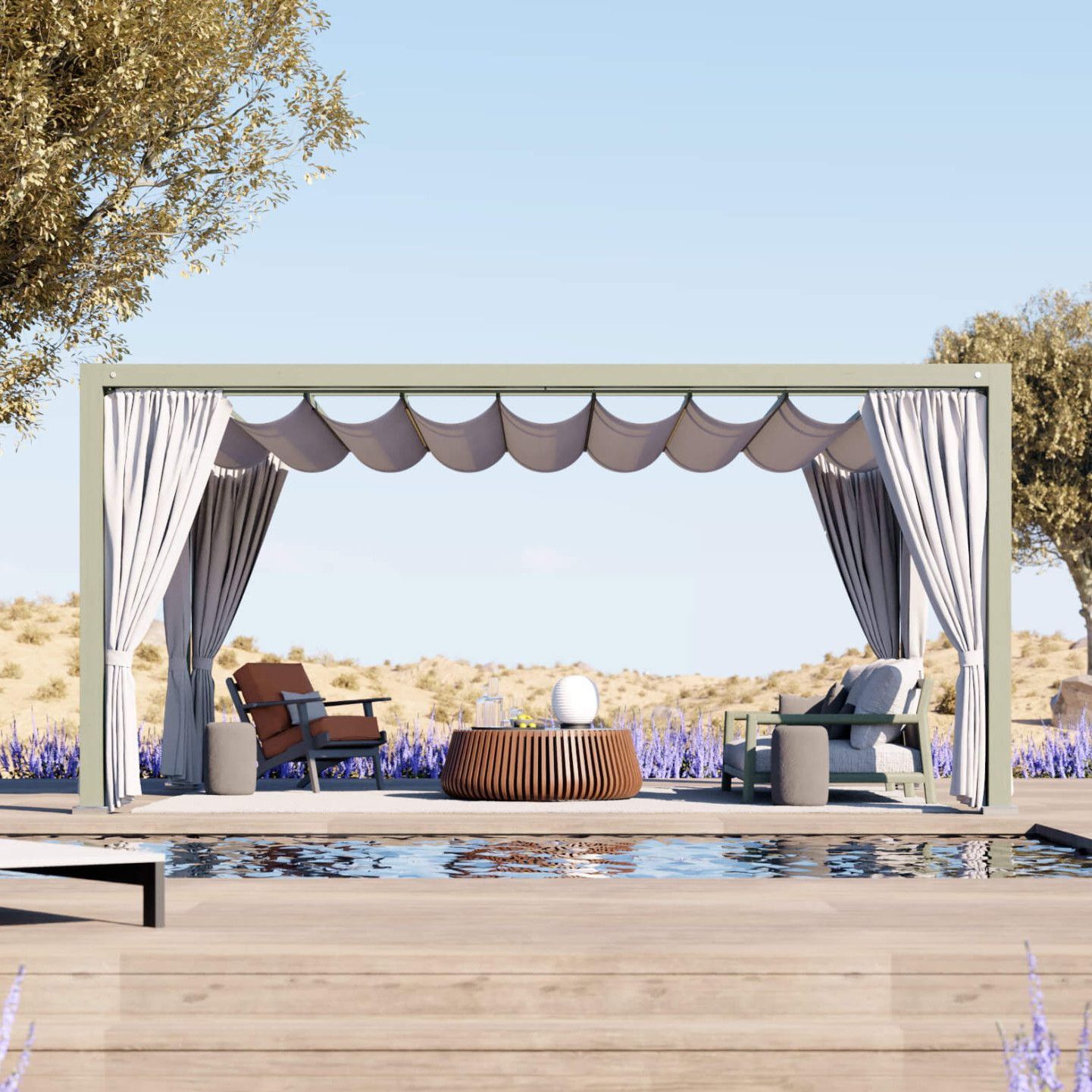- Outdoor Vorhänge: Eine lockere Lösung vor Sonne und ungewollten Blicken bieten unsere Vorhänge aus speziellen Outdoor Stoffen. Diese werden durch eine Vorhangschiene an den Seiten nach Bedarf gezogen.