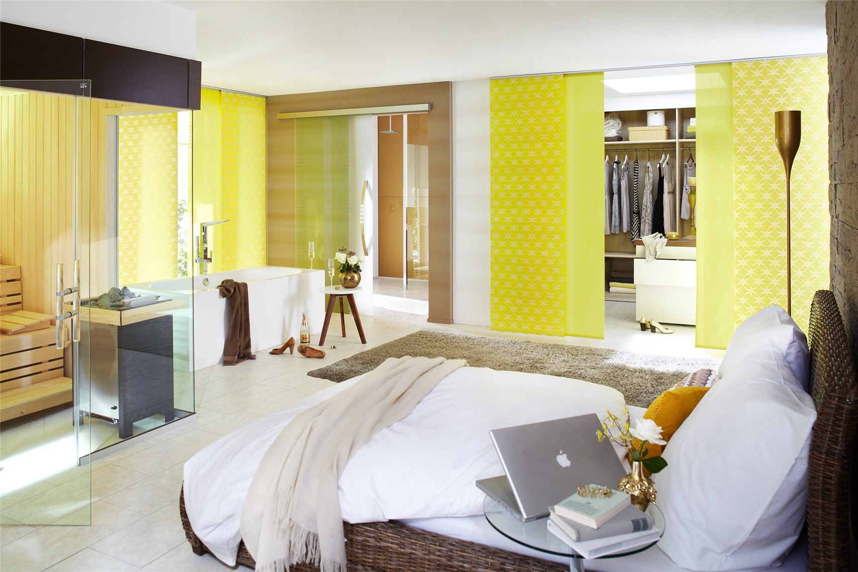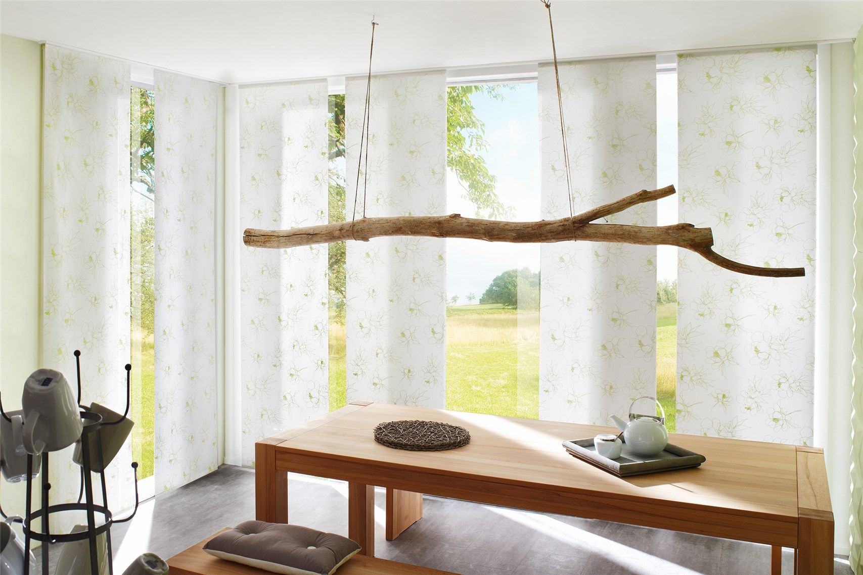 Der moderne Vorhang! Die sogenannten Paneele eines Flächenvorhangs können stufenlos verschoben werden und bieten somit eine flexible Lösung. Die Paneele werden in einer Schiene geführt, welche an der Wand oder an der Decke befestigt wird. Flächenvorhänge sind für die Licht- und Sichtregulierung wie geschaffen und gerade für große Fensterfronten und Glasflächen in modernen Wohnräumen und Büros geeignet.