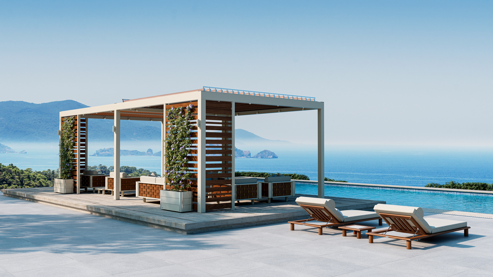 • Umkleidezonen im Freien: Gerade an Übergängen zum Hallenbad oder zu den Duschen hilft eine Überdachung dabei, den Boden kühl und trocken zu halten und unangenehmes Aufheizen zu vermeiden.
