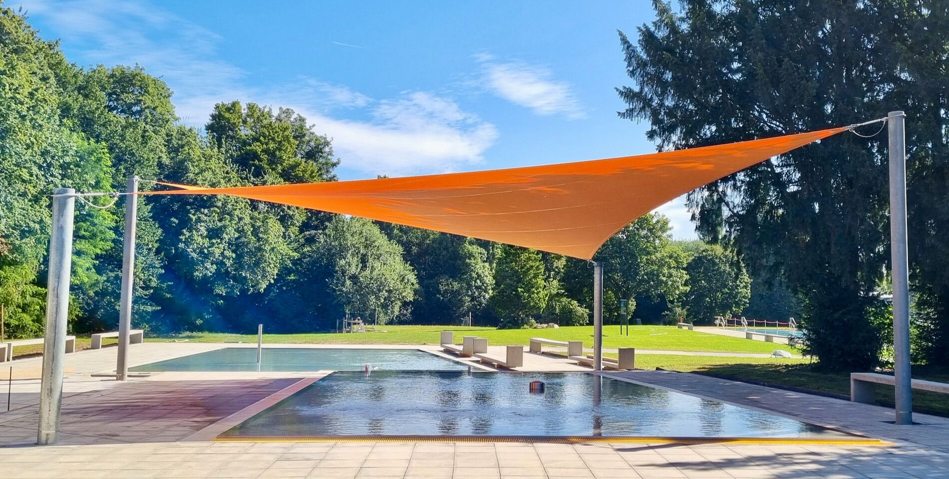 Unsere Sonnenschutzsysteme für Freibäder schaffen gezielte Schattenplätze, die den Aufenthalt im Schwimmbad nicht nur angenehmer, sondern auch gesünder machen.