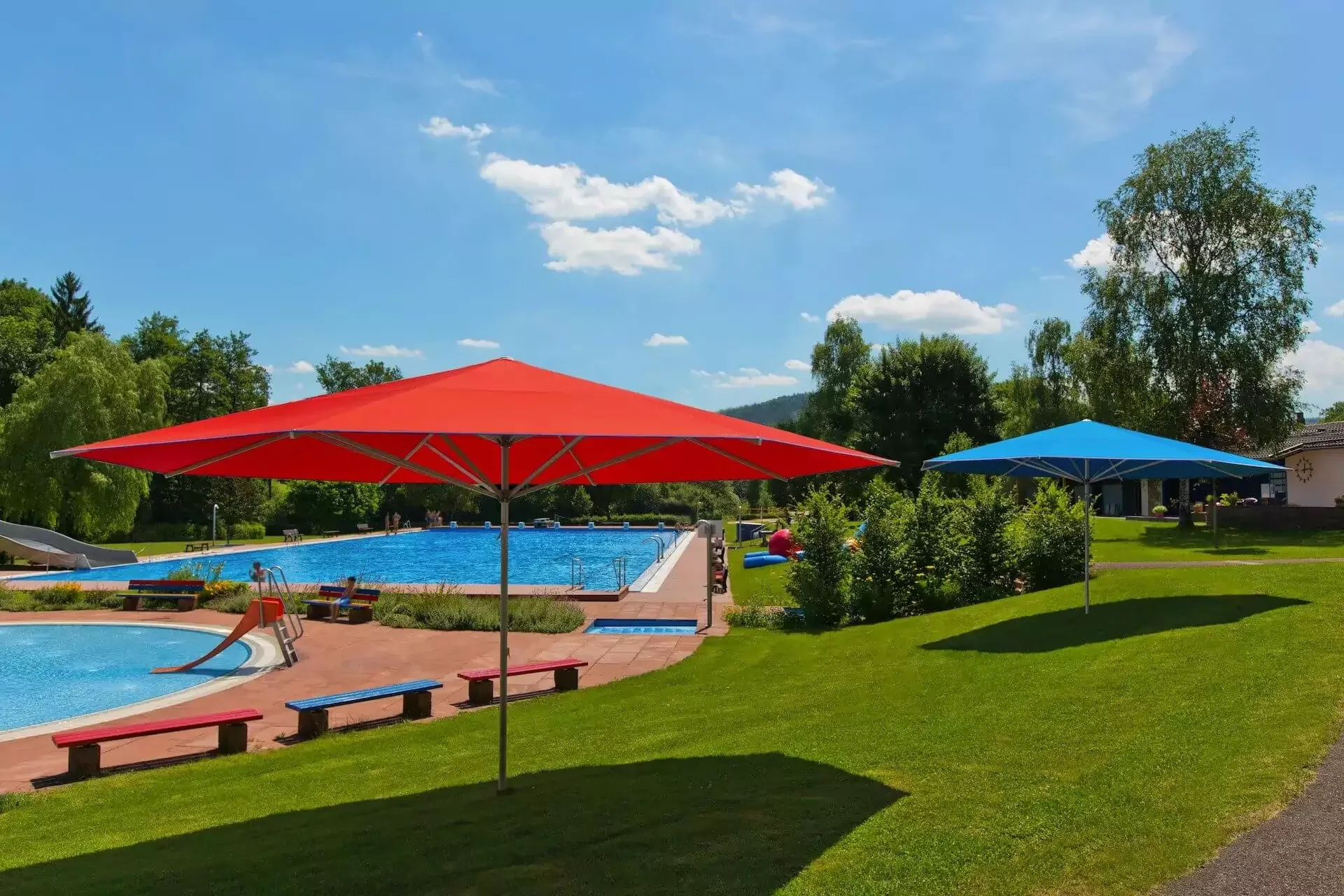 Die Liegewiese im Freibad ist das Herzstück für Erholung, Sonnenbaden und entspannte Nachmittage. Doch nicht jeder möchte sich der Sonne ungeschützt aussetzen. Dauerhafte Sonnenschirme auf der Liegewiese bieten hier eine wichtige Entlastung für Familien, Senioren oder Gäste mit empfindlicher Haut.