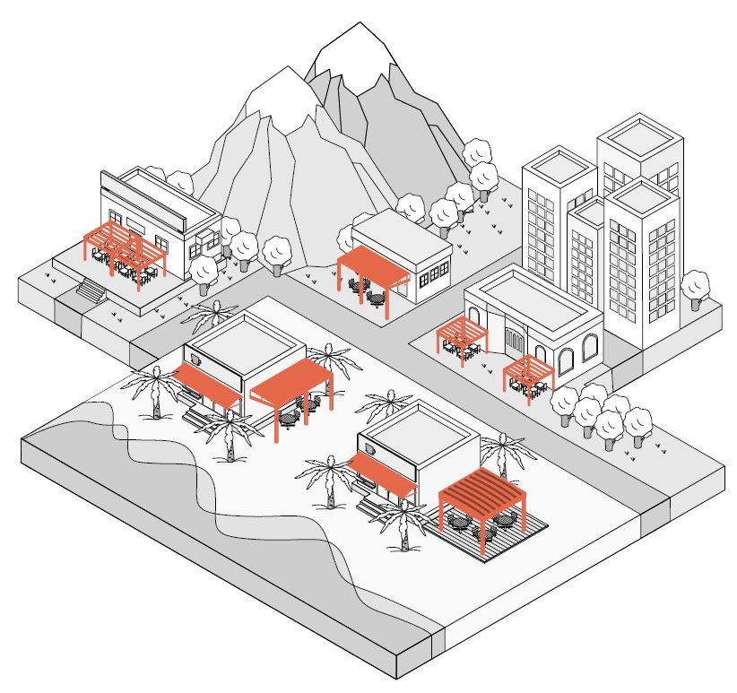 Unsere Geschäftskunden profitieren von individuell zugeschnittenen Sonnenschutzlösungen von Frimey, die auf die jeweiligen Immobilien und Nutzungsbereiche abgestimmt sind. Von der ersten Bedarfsermittlung über Architektenabstimmungen bis hin zur technischen Planung berücksichtigen wir Machbarkeit, Schattenfläche, Design und Energieeinsparpotenziale. Unsere Experten erstellen für unsere Geschäftskunden umfassende Konzepte über die Gestaltung Ihres Außenbereichs oder Ihrer Fassade mit Sonnenschutz, sodass Sie den riesigen Mehrwert jahrelang genießen können.