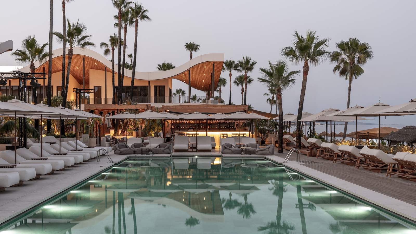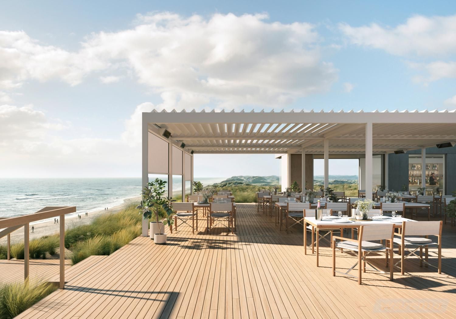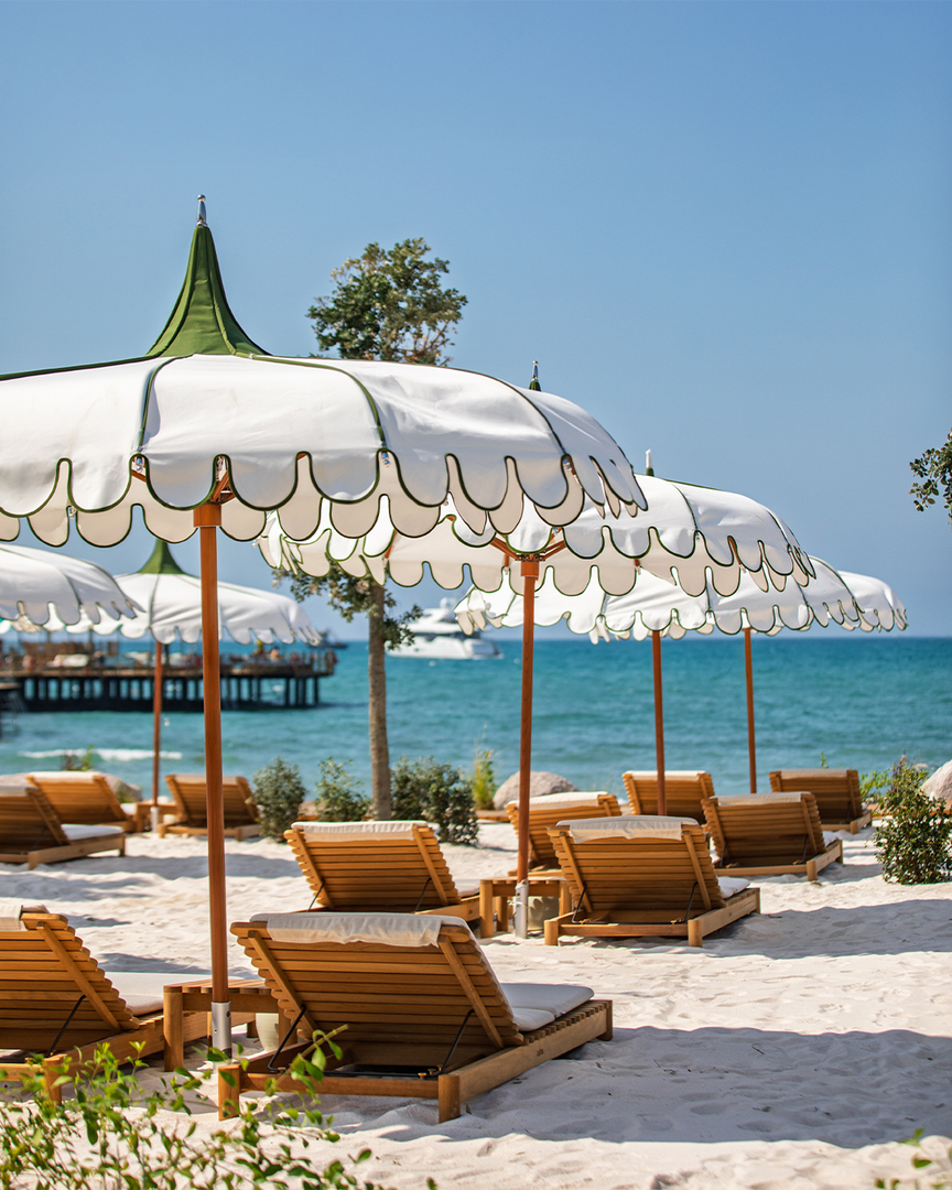 Sonnenschutz am hoteleigenen Strand schafft eine klare, einladende Strandatmosphäre. Designvarianten von Sonnenschirmen reichen von klassischen Schirmen über abstrakte Strukturen. Moderne Cabana-Strukturen bis hin zu flexiblen Pergolen, definieren Schattenbereiche mit Strandüberdachungen. Sonnenschutz wirkt sanft durch das angenehme Schattenspiel, keine direkte Sonneneinstrahlung und ein ruhigeres, entspannteres Ambiente. Jeder Strandabschnitt kann individuell farblich gestaltet werden, sodass Sonnenschirm oder Cabana optisch zum Hotelkonzept passen. So entsteht eine klare Zuordnung: Jeder Sonnenschutz gehört nach Design zum jeweiligen Bereich und verstärkt das Gesamtbild des Hotels. So verbindet sich Funktion mit Design zu einer harmonischen, sicheren und einladenden Strandatmosphäre.