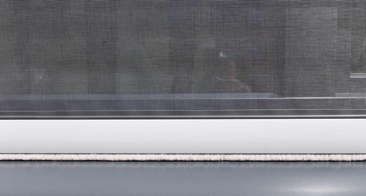 Das Insektenschutzplissee macht vor allem Türen und Durchgänge für Insekten dicht. Die untere Laufschiene ist wenige Millimeter hoch, deshalb sehr leicht zu reinigen und – ein wichtiger Aspekt – auch barrierefrei. Praktisch: es gibt Griffmulden innen und außen! Das Plissee kann damit auf voller Höhe von beiden Seiten reguliert werden und lässt sich perfekt hinter jeden Sonnenschutz montieren, weil keine Griffe vorstehen. Die Einbautiefe beträgt nur 189 mm und es passt aufgrund der guten Paketierung perfekt in die kleinste Nische.