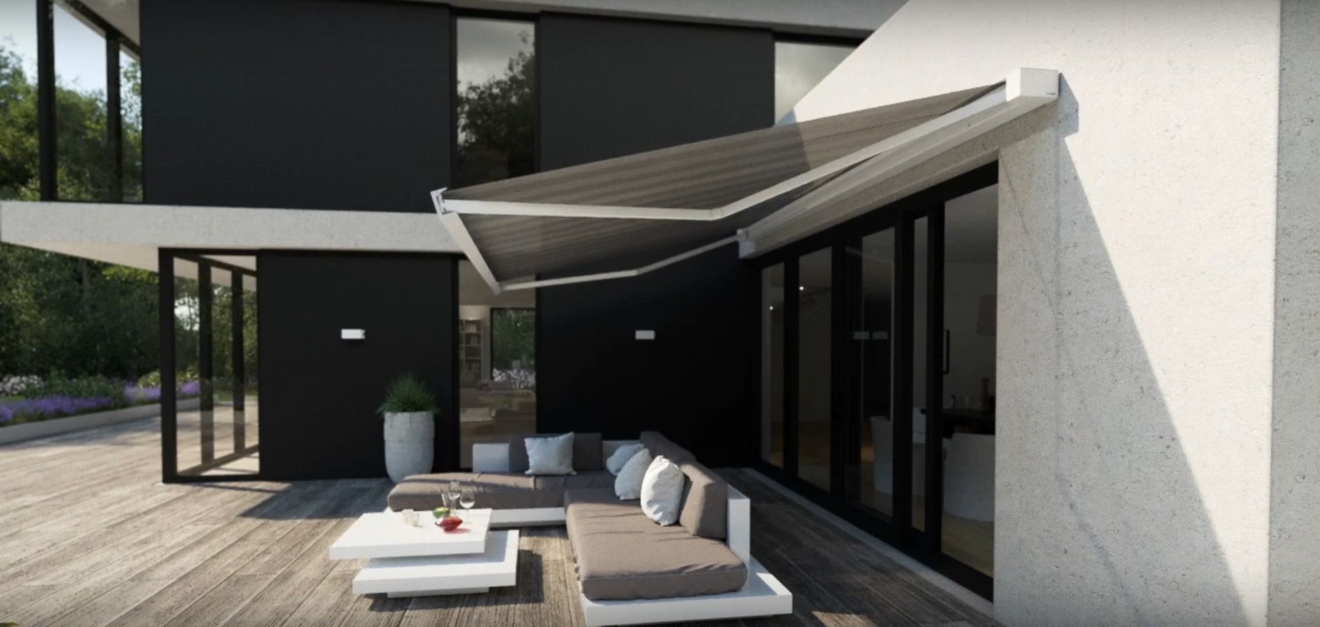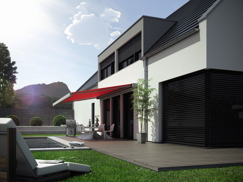 Kassettenmarkise K70: Diese große Markise aus der Cubic Line wird sie begeistern. Sie vereint Komfort und Design in Perfektion und ist die idelae Lösung für kubische Architekturen mit Flach- oder Pultdach.