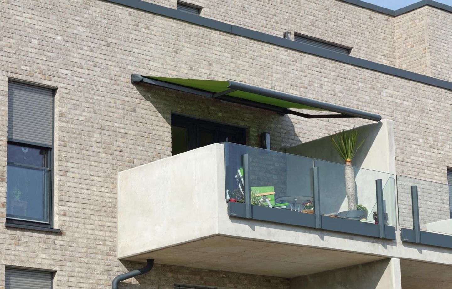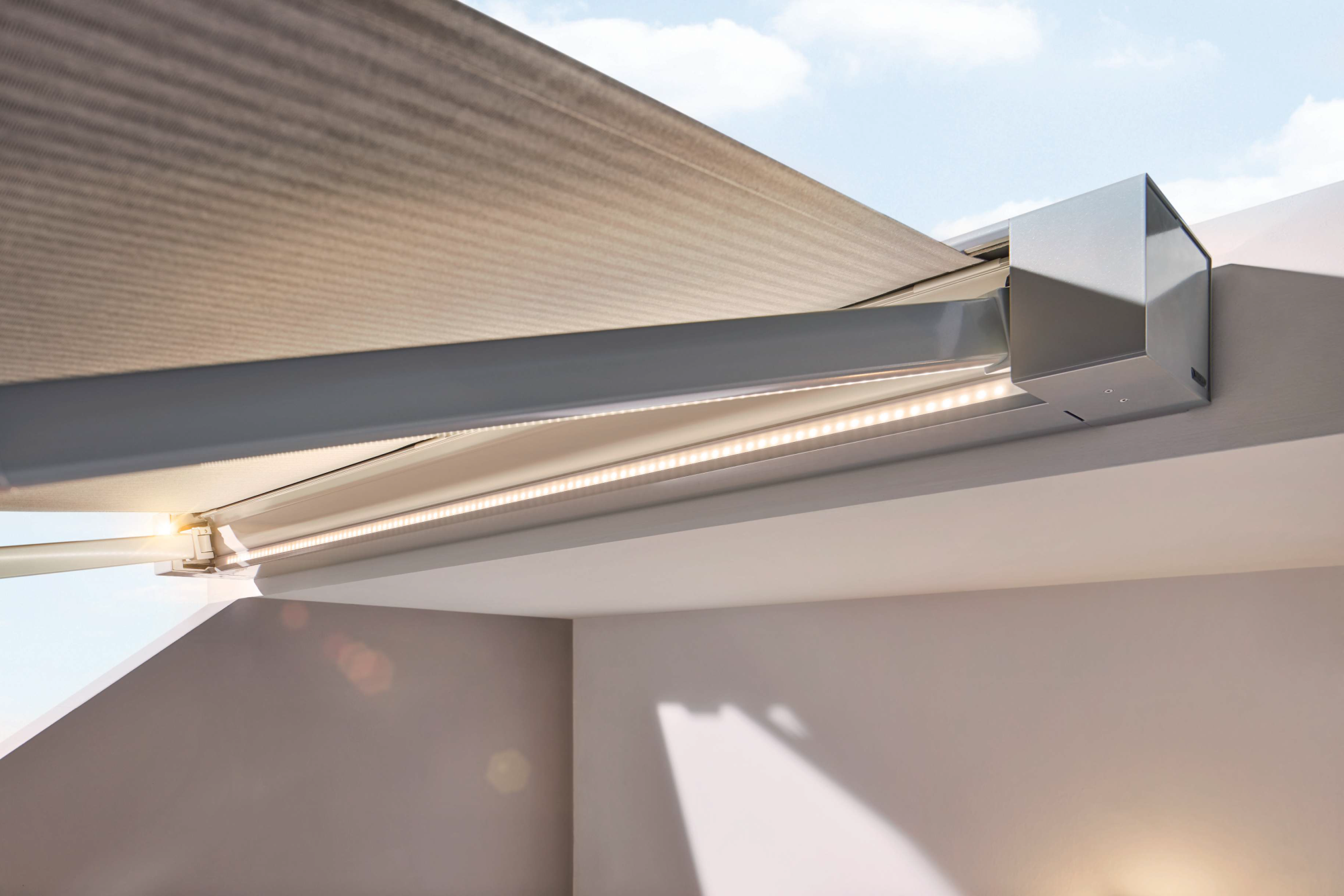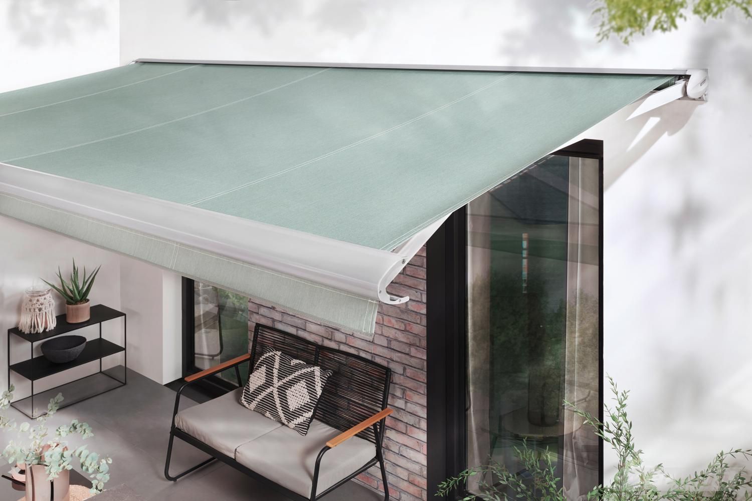 Kassettenmarkise K50: Freuen Sie sich auf eine elegante Markise, die in eine schützende Kassette eingefahren wird. Stilistisch ein kubisch moderner Blickfang – bauseitig kompakt und stabil.