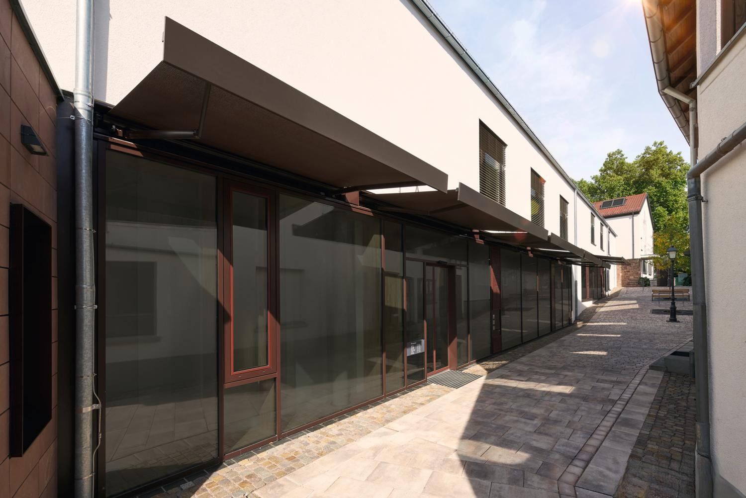 Sonnenschutz vor Eingängen oder Schaufensterfronten verleiht dem der Ladengeschäft eine einladende Eleganz. Durch sanfte Schattenwürfe wirkt der Eingang einladend und komfortabel. Die abgestimmte Beschattung schafft gleichmäßige Lichtstimmungen, Produkte lassen sich so besser in Szene setzen. Eine gepflegte Front strahlt Professionalität aus und steigert Vertrauen der Kundschaft. Zusammen wirken Stil und Funktion harmonisch, was das Einkaufen angenehmer macht.