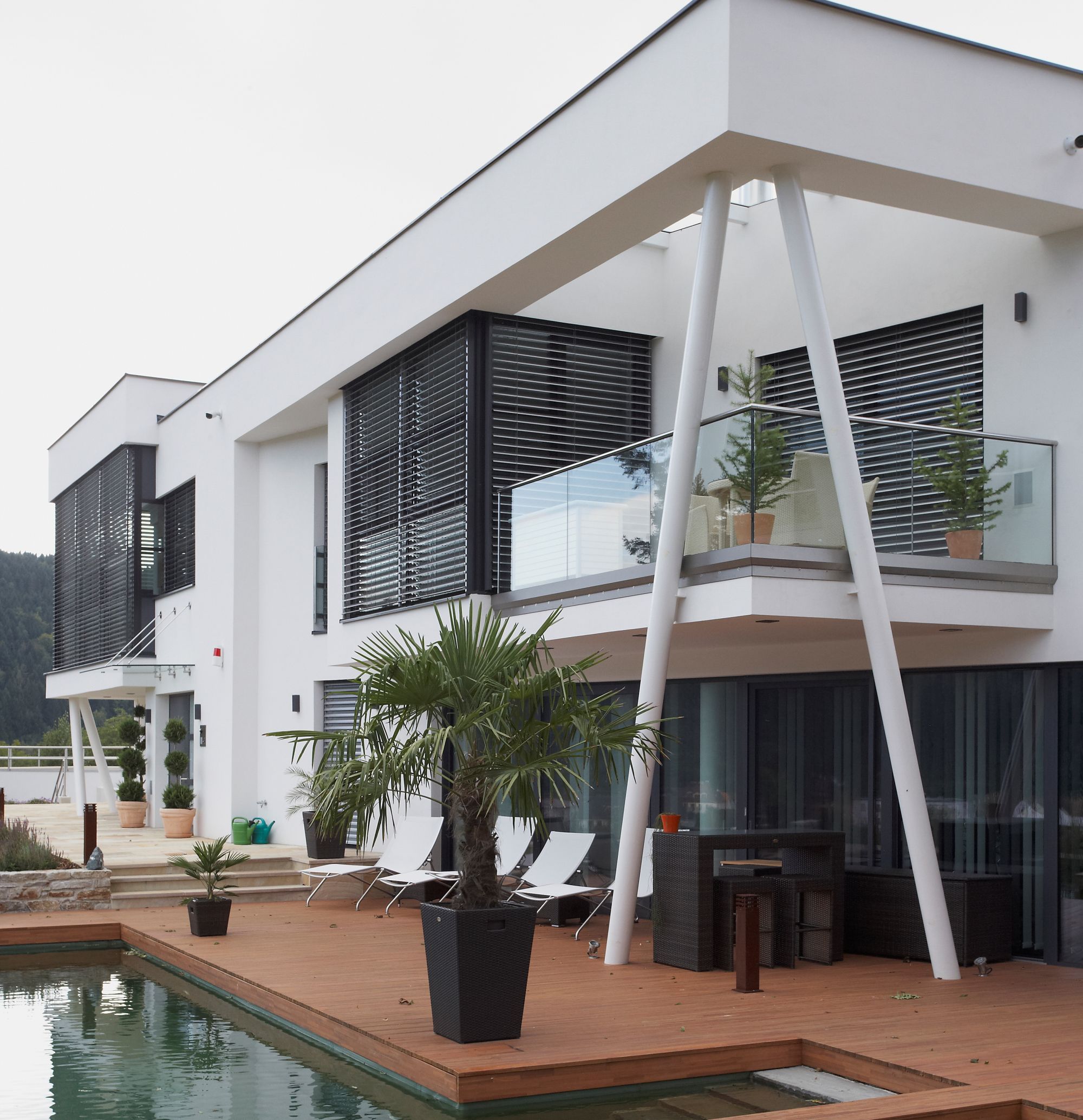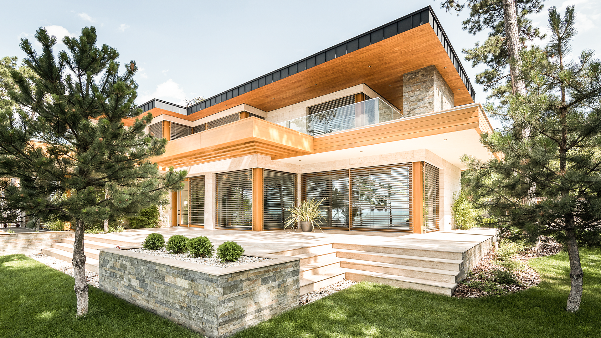 Raffstores bieten als Sichtschutz eine flexible Barriere gegen fremde Blicke. Durch verstellbare Lamellen lässt sich der Blickwinkel gezielt kontrollieren und nur gewünscht nach außen öffnen. Beim geschlossenen Zustand verhindern dicht stehende Lamellen nahezu jede Einsicht in den Innenbereich. Selbst bei angeschalteten Leuchten oder auch Tageslicht bleibt der Innenraum von außen abgeschirmt. Sie ermöglichen Privatsphäre, ohne den Raum vollständig abzudunkeln oder zu verdunkeln. Die Lamellen können je nach Bedarf leicht geneigt bleiben, um Durchsicht von unten zu vermeiden. Eine smarte Steuerung ergänzt den Sichtschutz durch zeitgesteuerte oder automatische Anpassung. Insgesamt verbinden Raffstores Privatsphäre mit ästhetischer Fassadenintegration und Komfort.