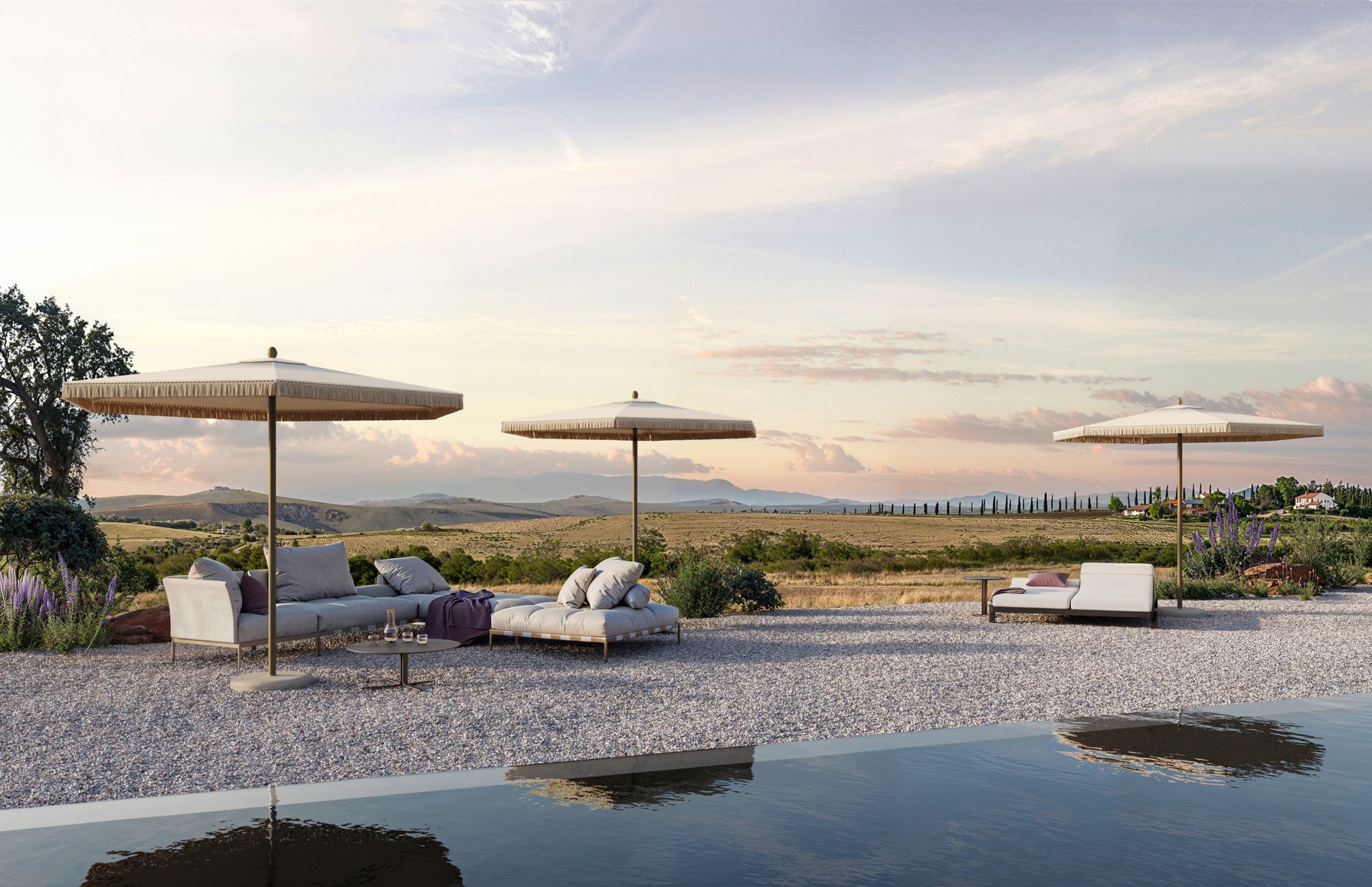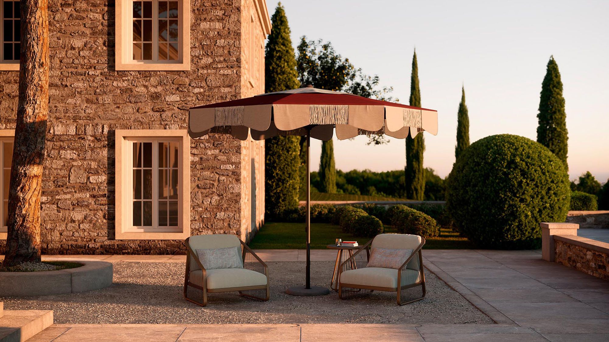 Life ist better with a good shade! Frimey sorgt für Schatten mit einem Mittelmastschirm.
