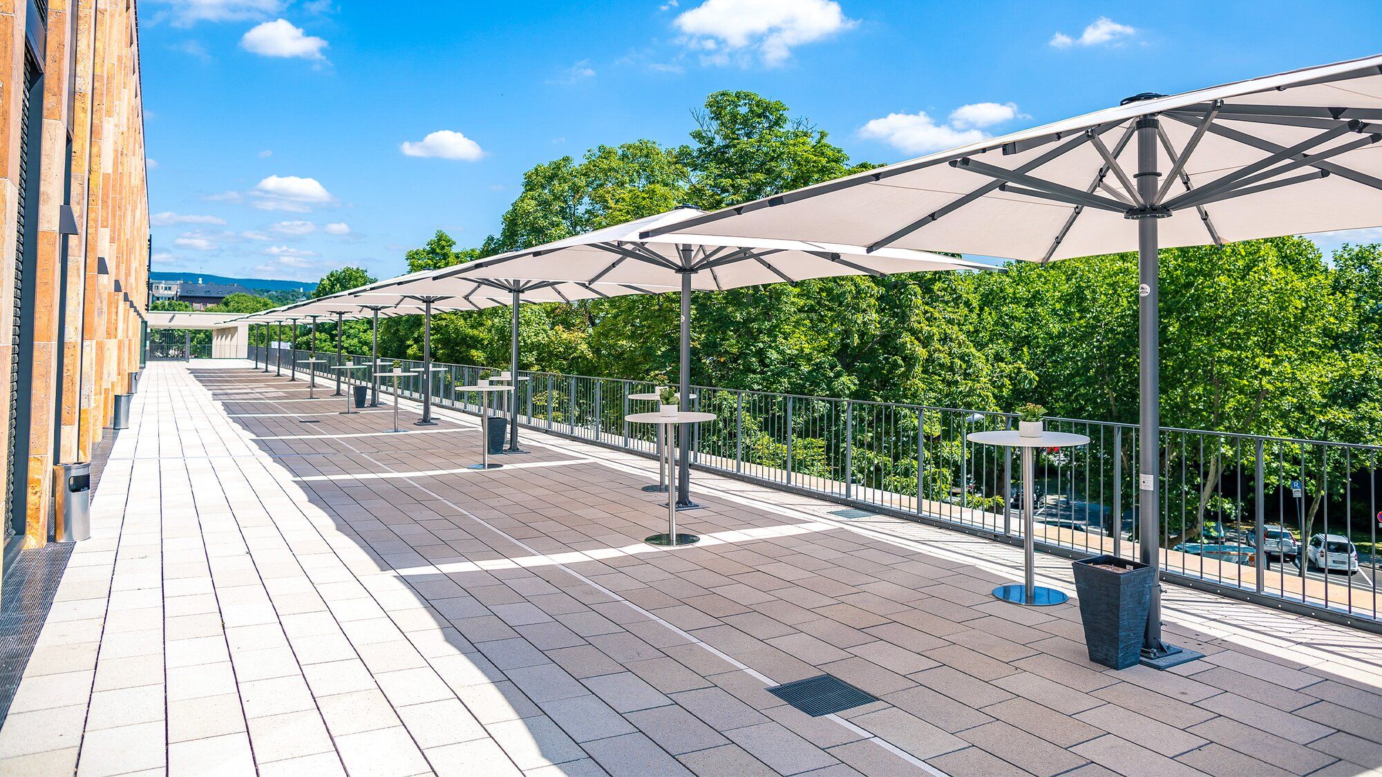 Ein Mittelmastschirm ist in erster Linie ein Sonnenschutz mit einem spezielle Schirmtuch. Unsere Mittelmastschirme bieten höchsten Sonnenschutz vor UV-Strahlen und bringen behaglichen Schatten an den gewünschten Ort. Auf all unseren stabilen Gestellen sind High-End Schirmtücher mit einem Gewicht von ca. 300g/m² aus Acryl, Polyester oder PVC aufgezogen. Dies bietet dem Nutzer besten Sonnenschutz in vielen Farben und Dessins.