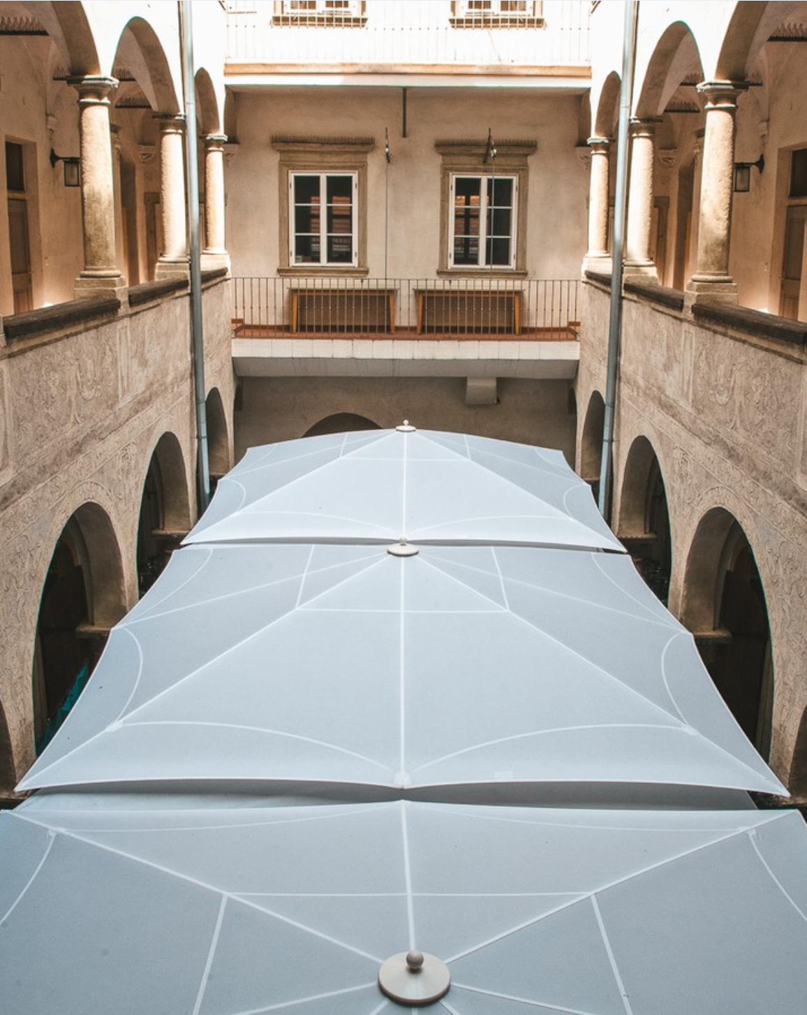 Ein Mittelmastschirm ist immer aus Aluminium mit einem Acryl oder Polyester Schirmdach. Das stranggepresste Aluminium gibt dem Gestell die nötige Stabilität, damit er auch an windigen Tagen genutzt werden kann. Das Gestell wird in der Wunschfarbe schlagecht und witterungsresistent pulverbeschichtet. Die einzelnen Dachstreben aus Aluminium sorgen für eine optimale Tuchspannung und einen perfekten Halt.
