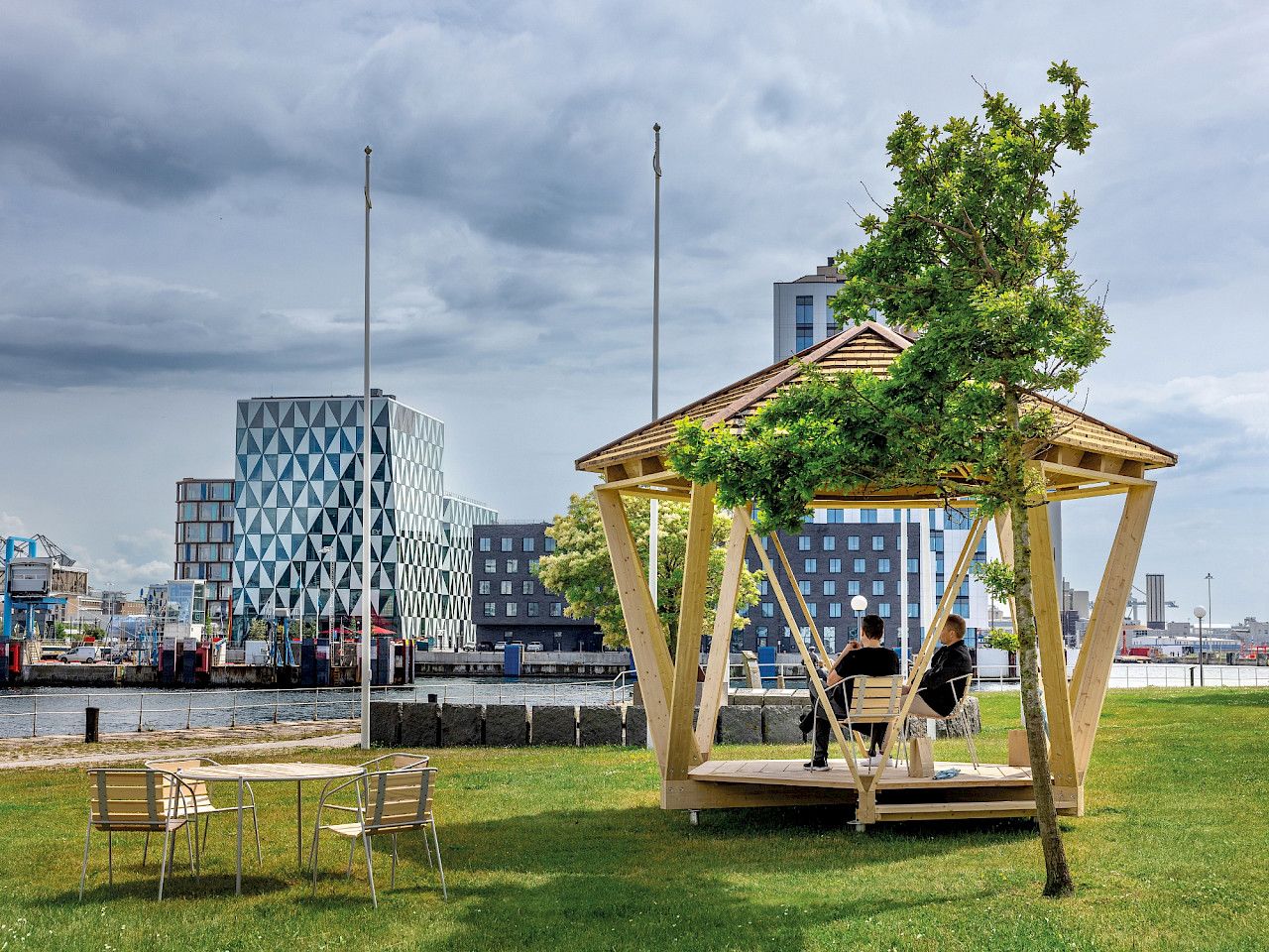 Besonders in Parkanlagen entsteht mit dieser Lösung ein nachhaltiger, schattiger und einladender Ort der Ruhe und Begegnung