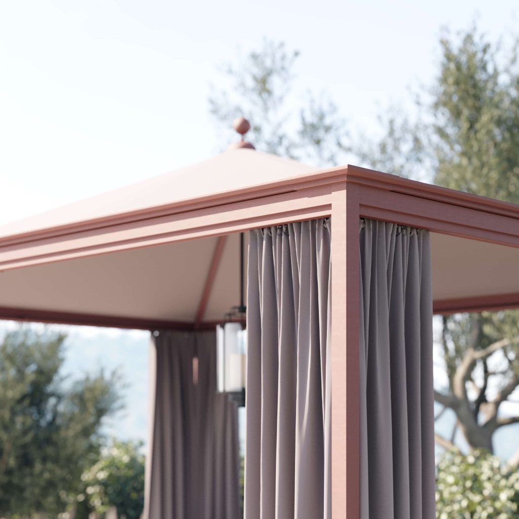 Erleben Sie das unbeschwerte Lebensgefühl unter unseren hochwertigen Pavillons! Die Pavillons bestehen aus harmonievollen Strukturen, welche sich an jede Architektur eines Gebäudes oder an die umliegende Landschaft perfekt anpassen lassen. Die vielfältige Nutzungsmöglichkeit umfasst den heimischen Garten, öffentliche grüne Parks, Hotellerie und Gastronomie oder Unternehmen als Überdachung für Messen. Die wunderbaren Farbkombinationen von Textilien und Beschichtungen lassen den Pavillon wohnlich und gemütlich dastehen. Nutzen Sie Ihren Pavillon wetterunabhängig, egal ob im Hochsommer mit heißen Temperaturen oder an einen verregnetem Herbststag, mit dem passenden Zubehör ist die Konstruktion nahezu ganzjärig nutzbar.