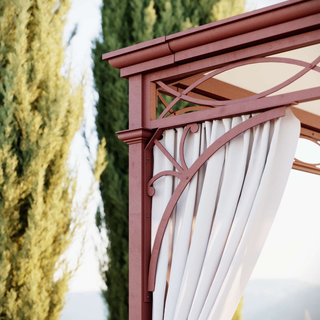 Unser Pavillon Sortiment bietet moderne Designs mit geraden Linien, sowie auch klassische royale Designs mit Schnörkel. Die modernen Designs sind sehr schlicht und zurückhaltend gestaltet, sodass eine puristische Optik entsteht. Dieses Design passt vor allem zum modernen Baustil, welcher von Kubus-Dächern geprägt ist. Die royalen Designs sind besonders für klassische und historische Bauwerke oder auch moderne Stadtvillen mit Charakter und Stil geeignet. Ebenfalls bestens geeignet ist das klassische Design für die mediterranen Finka-Stil mit südländischen Flair.