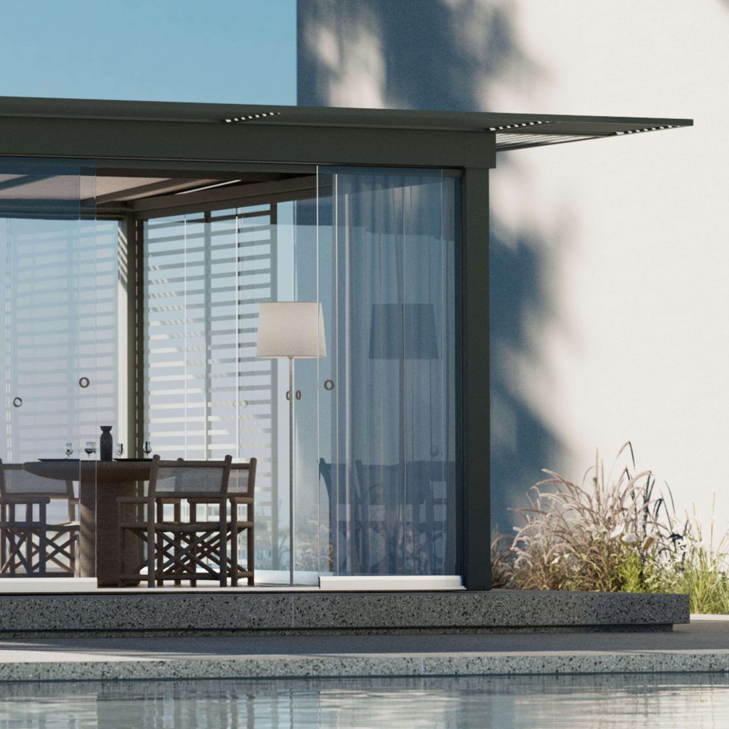Sie können ein Pavillon direkt an eine Hauswand montieren, sodass Sie den Wohnbereich nahtlos erweitern können. Der Pavillon wird entweder über Wandhalterungen oder direkt durch die Strebe an die Wand montiert. Es spielt dabei keine Rolle aus welchem Baustoff Ihre Wand besteht, denn unsere Spezialisten haben für jeden Wandaufbau das passende Montagematerial parat. Für sehr lange Terrassen können mehrere Pavillons nebeneinander montiert werden, sodass auch sehr große Flächen überdacht werden können.