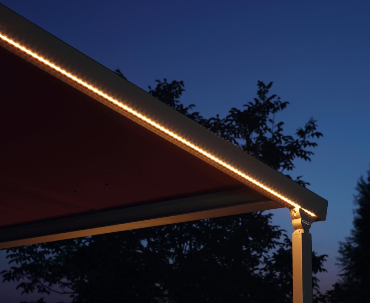 Die Vielfalt an Zubehör ist groß, daher ist die Pergolamarkise ein Alleskönner. Die vordere Seite kann durch einen frontalen Rollo beschattet werden und die seitlichen durch eine Markise. Für mehr Komfort an kälteren Tagen sorgen unsere Heizstrahler, welche durch die innovative Heiztechnik kein rotes Licht abstrahlt. Bei der abendlichen Dämmerung bringt die optionale dimmbare LED-Beleuchtung Licht unter die Pergolamarkise. Das große Sortiment an Sensoren wie zum Beispiel Wind-, Sonne-, Regensensor oder eine Zeitsteuerung bringt eine beruhigende Sicherheit.