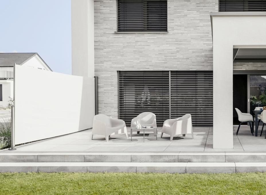 Bei einer tiefstehenden Sonne ist ein Volant-Rollo eine optimale Lösung. Dieser senkrechte Rollo ist entweder im Ausfallprofil der Pergolamarkise integriert oder wird direkt zwischen die Pfosten fest montiert. Die Bedienung erfolgt über eine Kurbel oder elektrisch mit Handsender bzw. Schalter und App. Der Stoff ist entweder identisch mit dem Markisenstoff der Pergolamarkise oder kann als Screen Stoff bei einer festen Installation zwischen den Pfosten gewählt werden. Ein Volant-Rollo schützt den Nutzer vor Sonne, Wind, Regen und ungewollten Blicken, somit ein vielseitiges Zubehör mit einem großen Nutzen.