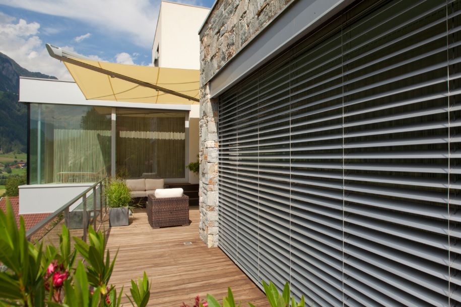 Raffstores sind durchdachte Werkzeuge zur Lichtgestaltung und Klimaregulierung. Das bedeutet tägliche Beanspruchung und höchste Anforderungen an Exaktheit und Langlebigkeit. Mit dem speziellen Abdunkelungssystem werden neue Standards gesetzt. Ein durch Kevlar verstärktes Tragband und eine hochpräzise Befestigung aus Kunststoff und Edelstahl verbinden die einzelnen Lamellen. Es ist eine geniale Kombination mit hohem Nutzen.