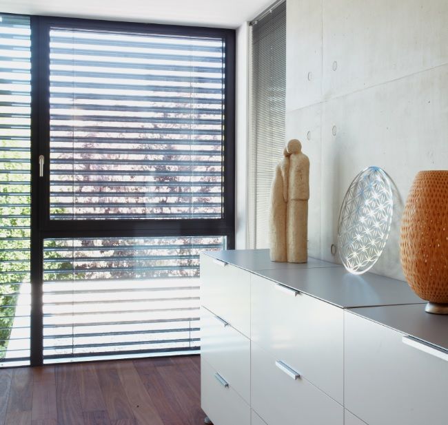 Die Lichtlenkfunktion kann in alle Raffstoren und Jalousien in unserem Sortiment verbaut werden, so erreichen wir den Nutzen für den privaten und auch gewerblichen Gebrauch. Das System ermöglicht die Lamellen des Raffstores aufgeteilt zu steuern, sodass der untere Teil der Lamellen geschlossen bleibt und der obere Teil geöffnet. So kann das Tageslicht in den Raum gelenkt werden und trozdem ist ein Blend-, Sicht-, und Sonnenschutz gewährleistet.