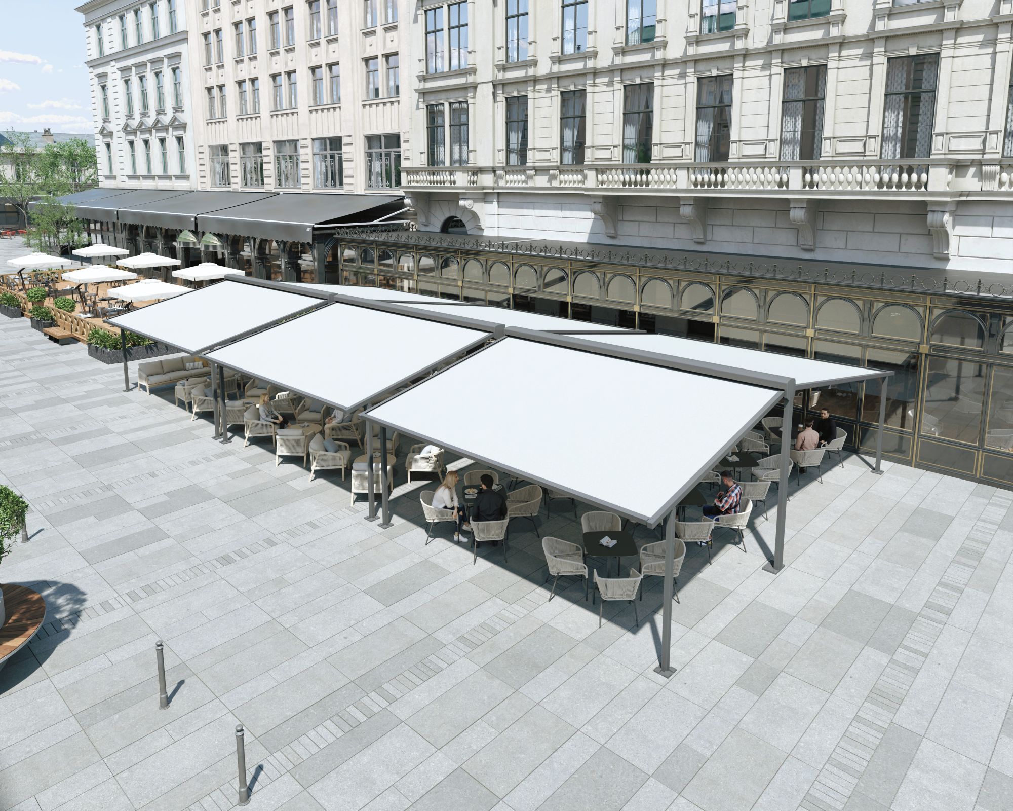 Moderne Gastronomie braucht einfache Abläufe. Deshalb bietet Frimey auch automatisierte Sonnenschutzsysteme für Restaurants, die sich intelligent und schnell steuern lassen.