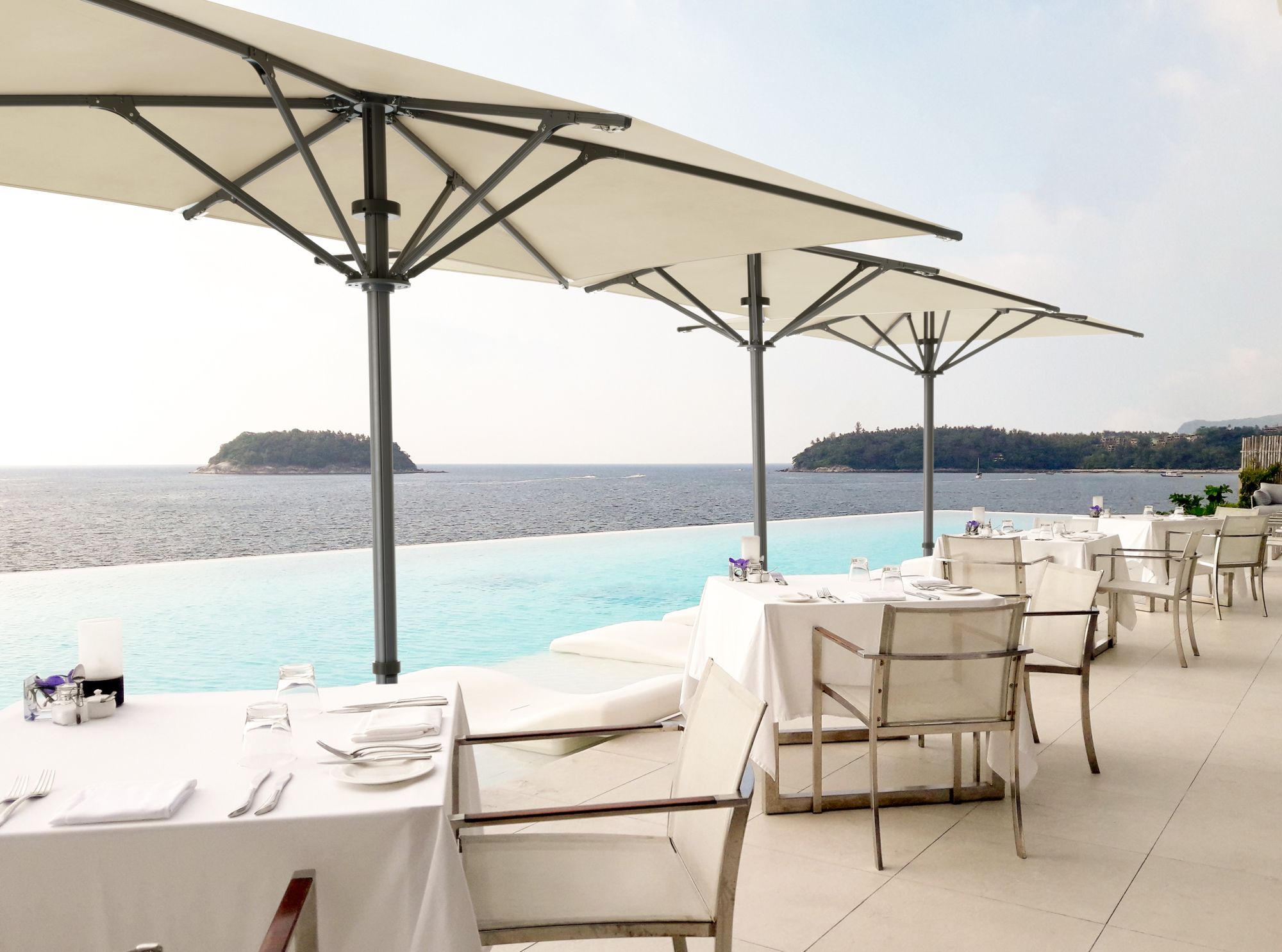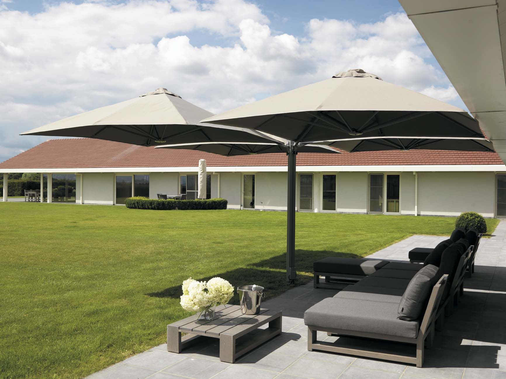 Unsere Schirmsysteme sind flexibel in der Schattengestaltung. Der mittige Multimast trägt bis zu vier Schirmedächer und bietet somit verschiedene Aufstellmöglichkeiten: von einem einzelnen runden Schirm, über einen rechteckigen Schirm bis hin zu einer quadratischen Schirmaufstellung mit bis zu 38 m². Mit zahlreichem Schirmzubehör wie Schirmheizung oder LED-Schirmbeleuchtung, wird der Platz zur gemütlichen Sitzfläche.