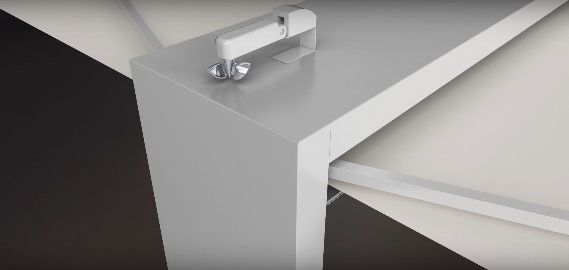 An dem freistehenden Gestell sind zwei Markisen integriert, welche seitlich ausfahren. Je nach Bedarf können Sie die beiden Markisen stufenlos ausfahren. Alle Standmarkisen werden standardmäßig mit einem Funkmotor geliefert, welcher über einen Funkhandsender gesteuert wird. Das Aluminium Gestell wird mit jedem Pfosten im Boden verankert, eine Reihenmontage ist möglich. Neben den ausgewählten Trendfarben können auch optional alle RAL Farbtöne konfiguriert werden.