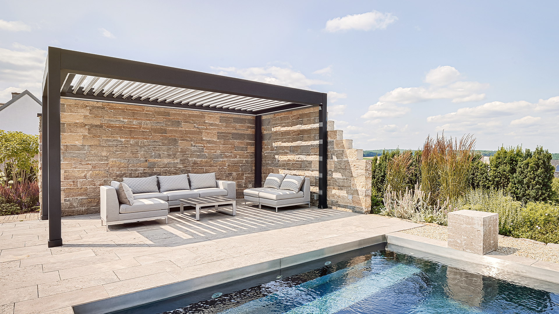 Die Terrasse stellt eine direkte Erweiterung des Wohraumes angrenzend an das Haus dar. Unsere Terrassendächer machen den außenliegenden Raum nahezu bei jeder Wetterlage nutzbar. Genießen Sie die ersten Sonnenstrahlen windgeschützt, schützen Sie sich im Hochsommer vor starker Sonne, verbringen Sie herbstliche Tage hinter der Glasschiebetür oder veranstalten Sie im Winter einen Umtrunk unter Ihrem Terrassendach mit Heizstrahlern. Mit den starren oder beweglichen Seitenwänden, grenzen Sie den erweiterten Raum im Freien von der Umgebung ab und erschaffen mit dem passenden Zubehör eine behagliche Atmosphäre.