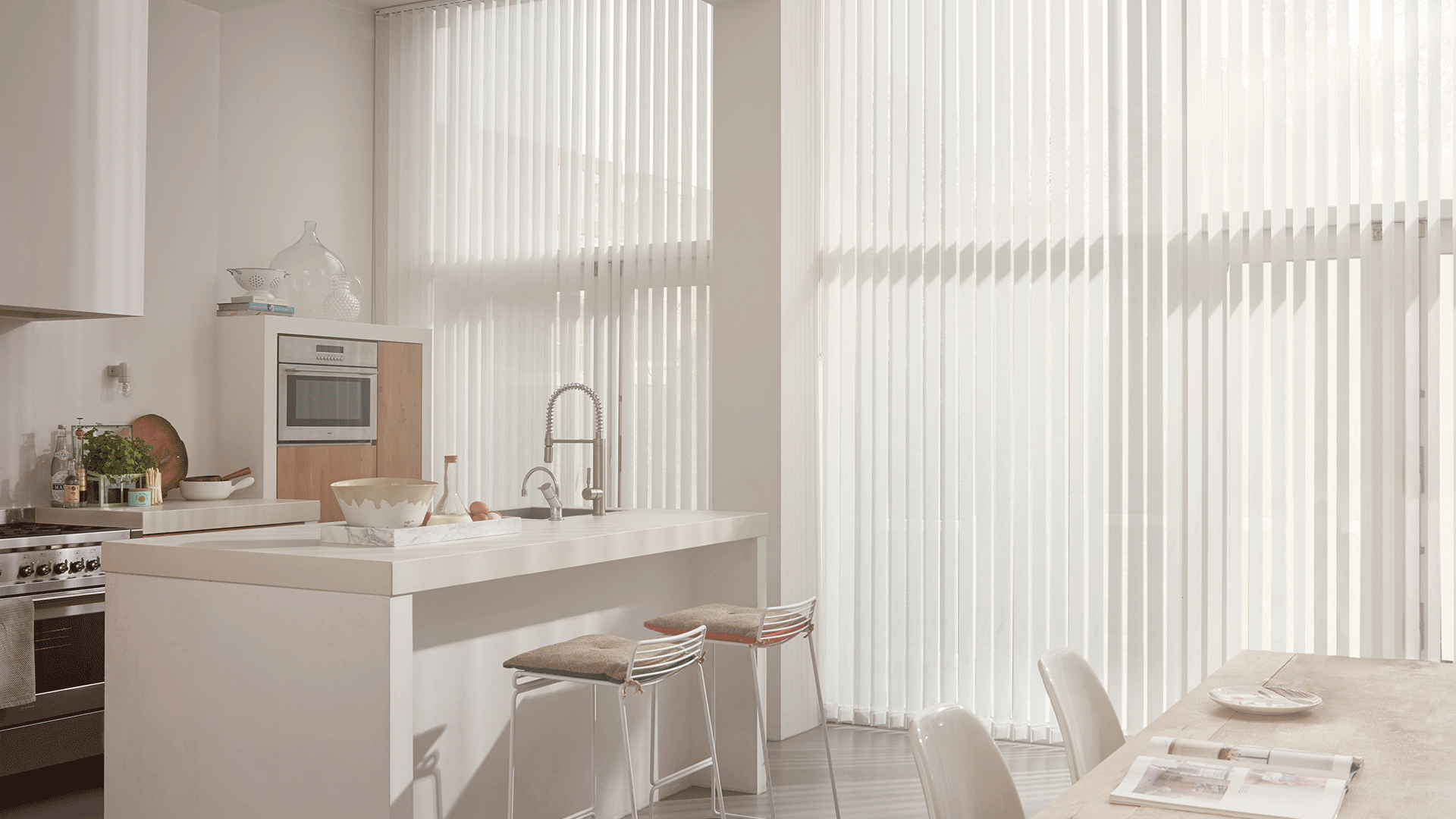 Die Vertikaljalousien werden auch Lamellenvorhänge genannt, Sie können gedreht und auch seitlich weggefahren werden. Besonders bei großen Glasanbauten mit langen Glasfronten, sind Lamellenvorhänge mit Ihren sehr langen Spannweiten und dem harmonischen Bild, eine wunderbare Sonnenschutz-Lösung. Auch Schräganlagen bei Wintergärten mit Dachschräge oder auch gebogene Anlagen sind umsetzbar.