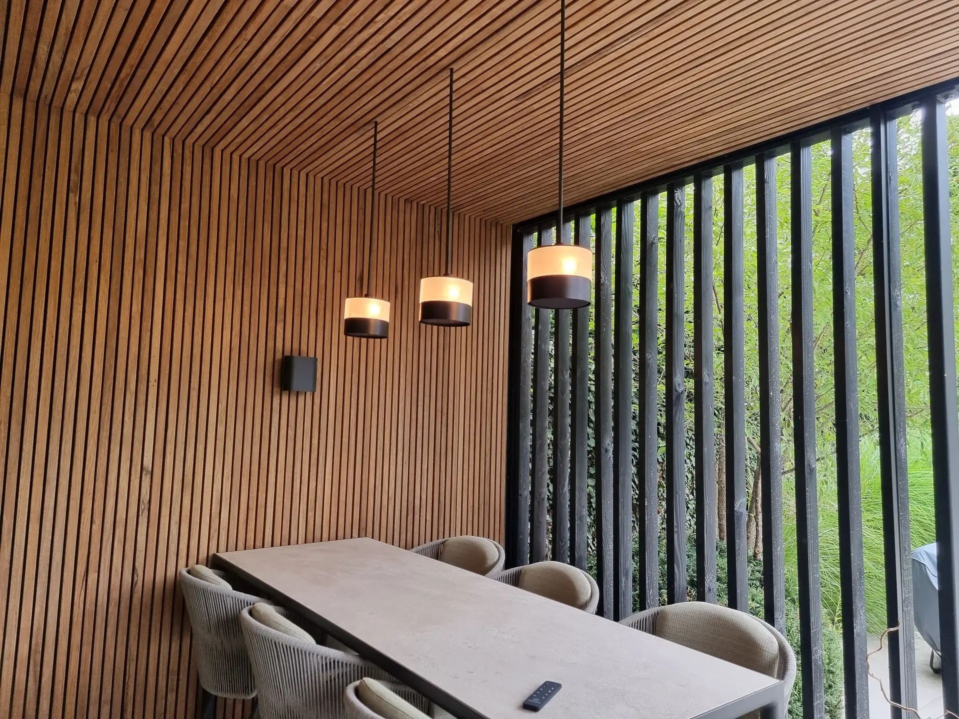 LED-Beleuchtung im überdachten Außenbereich schafft stimmungsvolles Licht bei abendlicher Dämmerung. Die energieeffizienten Modelle liefern gleichmäßige Helligkeit, ohne zu blenden, und lassen sich flexibel entlang der Tragkonstruktion installieren oder als freistehende Lösung. Warmweißes Licht erzeugt eine einladende Atmosphäre, welche Behaglichkeit entstehen lässt. Durch Dimmen und verschiedene Szenen lässt sich die Stimmung je nach Anlass anpassen. Robuste Wetterschutzgehäuse mit hohen Schutzklassen sorgen für zuverlässigen Betrieb bei Wind und Nässe.
